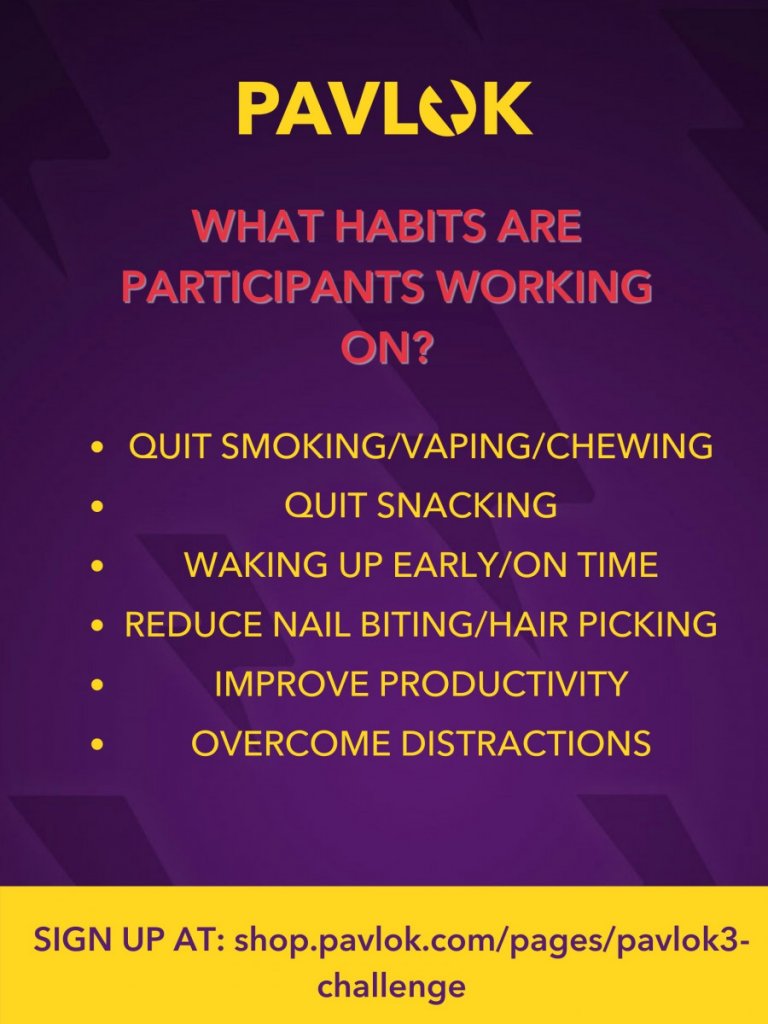 The Pavlok 3 Challenge is a 21-day program designed to help you break bad habits, create good habits, and improve the quality of your life. In addition to getting the newest generation of Pavlok (the Pavlok 3), you also get access to and support from Pavlok Habit Coaches, as well as a team of like-minded individuals to help hold you accountable to your goals.