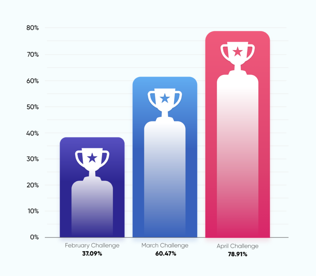 April  – 78% of participants achieved their daily goals more than ⅔ of the challenge timeframe; 37% had a 100% success rate