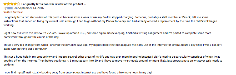 Now look, as CEO of Pavlok, I’ll be the first to admit we’ve had our fair share of growing pains. We’ve made mistakes. And while our product has helped thousands of people change their lives for the better, it isn’t the right fit for everyone.