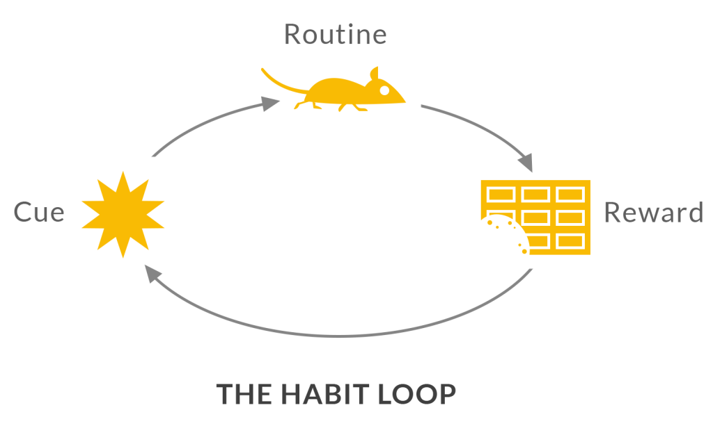 A habit loop is a trigger/cue that leads to an action to a reward.